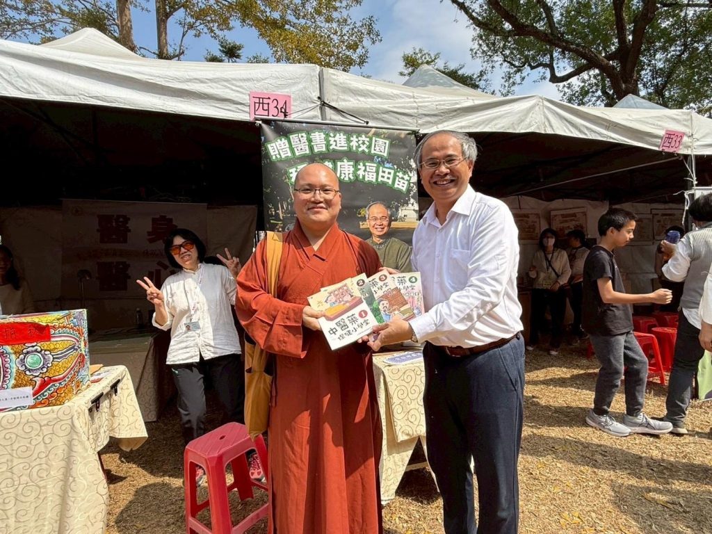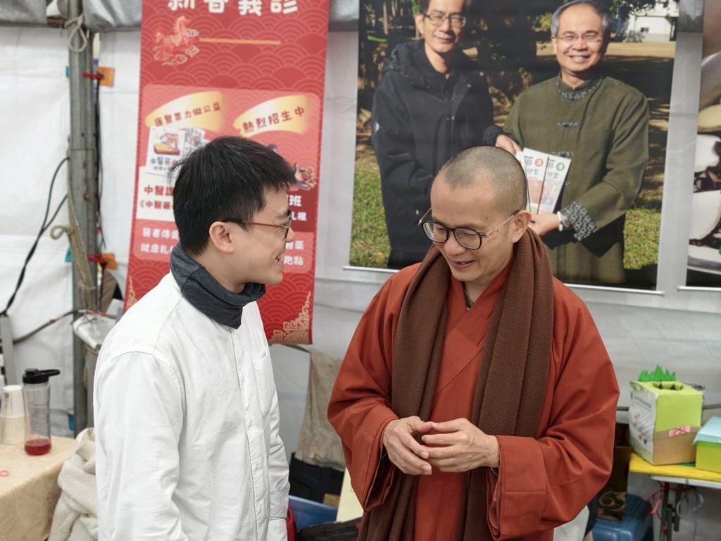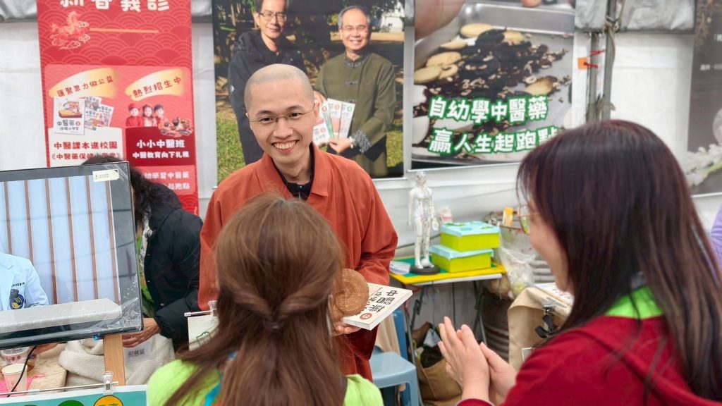 初一二三的法會首先在新竹鳳山寺揭開序幕,當天風和日麗,各方貴賓雲集,有法師了解贈校園的醫書傳遞了健康與智慧後,特別推薦父母們要購一套給子女,攤位也因此掀起了購買高潮,「小小中醫班」右邊攤位的闖關大挑戰吸引了小朋友參與,闖關可獲得長高知識與健康飲食 (四氣五味) 資訊,有兩組親子體驗保健的利益後,而當場報名「小小中醫班」。左邊攤位「贈書進校園活動」更擠滿了人潮,大家發心捐款贈書至校園。