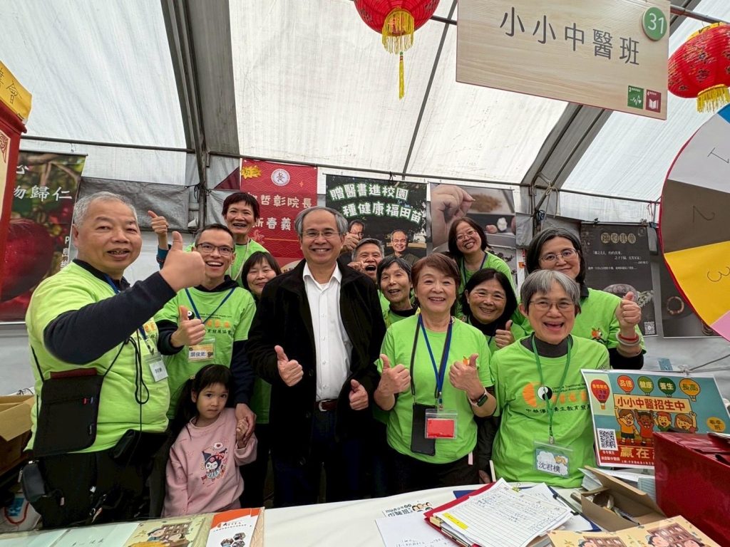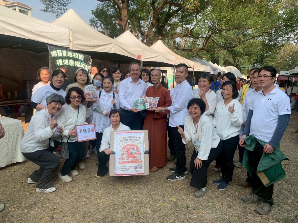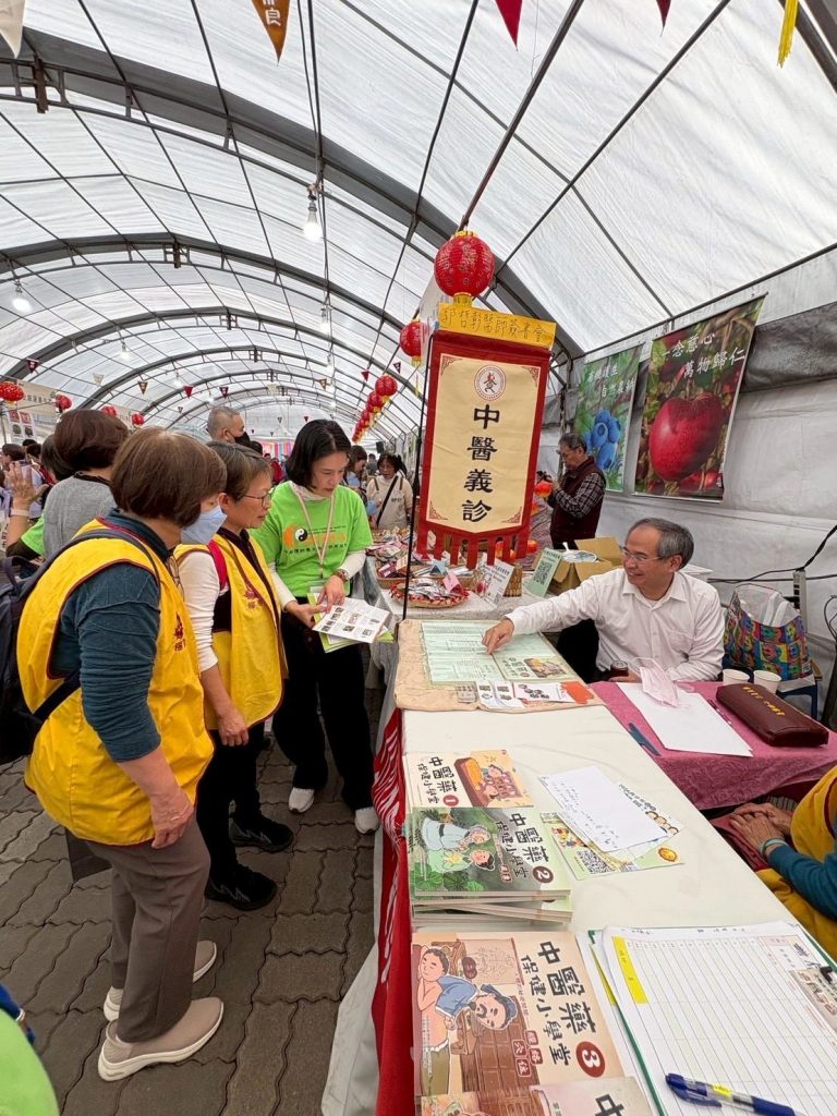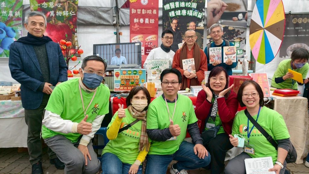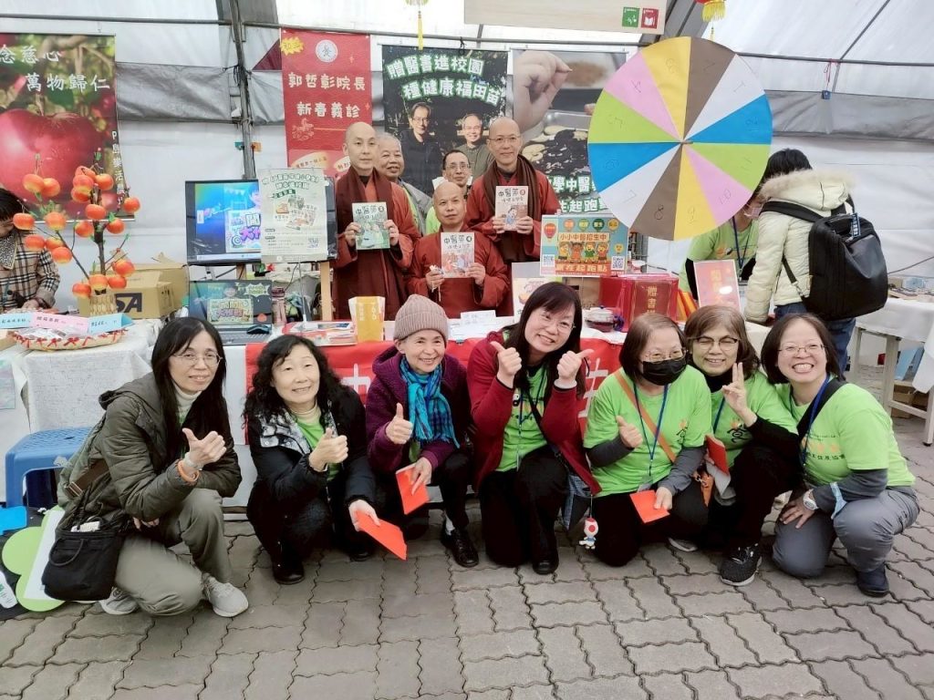 中華傳統養生教育發展協會致力於養生保健向下扎根,創立「小小中醫班」並編寫四冊「中醫藥保健小學堂」課本。故今年參加朝禮法會設置攤位有兩大主軸,分別是「小小中醫班」招生,以及「贈中醫藥小學堂書籍進校園」。於是我們號召義工們分別在北中南三地設攤參加活動,在新春與大家共造善業。