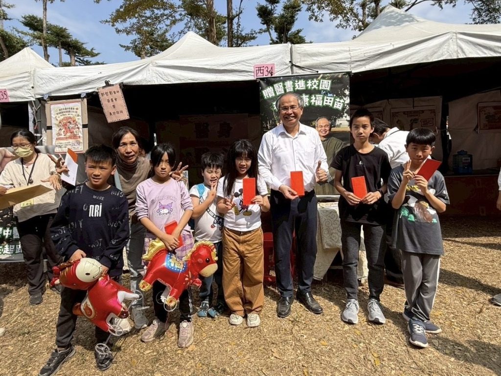 年初四來到了雲林福智教育園區,「小小中醫班」以闖關體驗方式進行,現場設有穴位體驗、食物分類、明目養肝茶介紹等關卡。孩子們在老師帶領下認識合谷穴、太衝穴等保健穴位,學習春季養肝,闖關後郭哲彰理事長會一一與小朋友們握手並送上紅包。親子參加活動後對這種別開生面的春節,都感到別有意義,不虛此行。